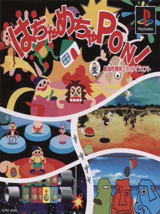 Hacha Macha Pon! is an educational game divided into 9 different mini games that are about using different shapes, sounds, colours, etc. The mini games are about selecting sounds, colours (in the caveman mini games), choose between different fireworks designs, move a strange creature through a maze to collect the items, etc